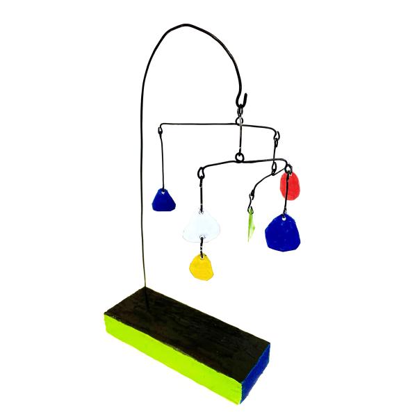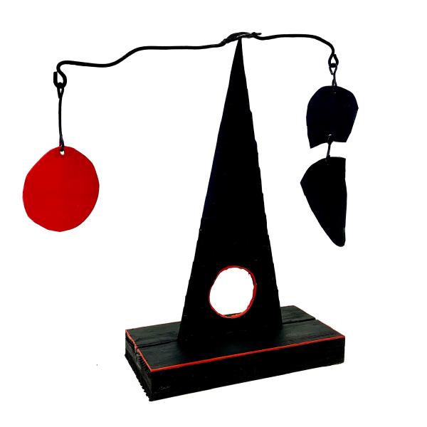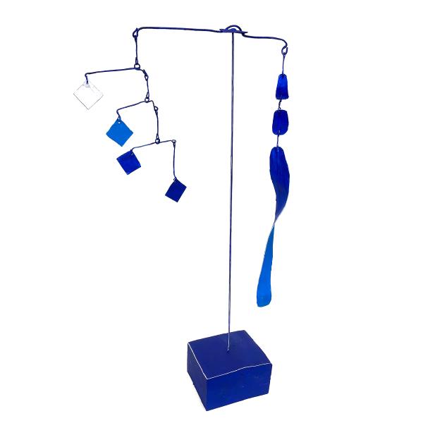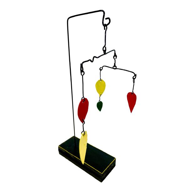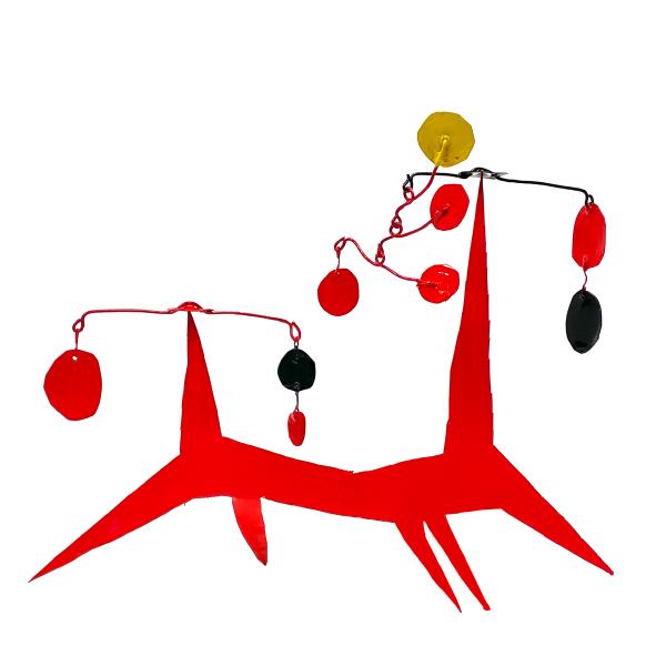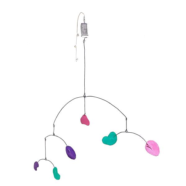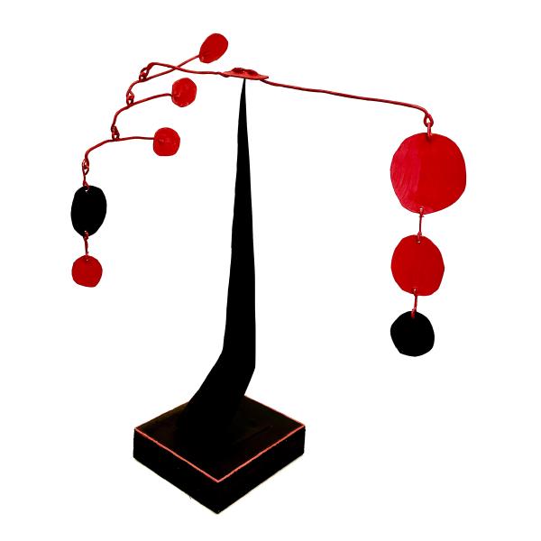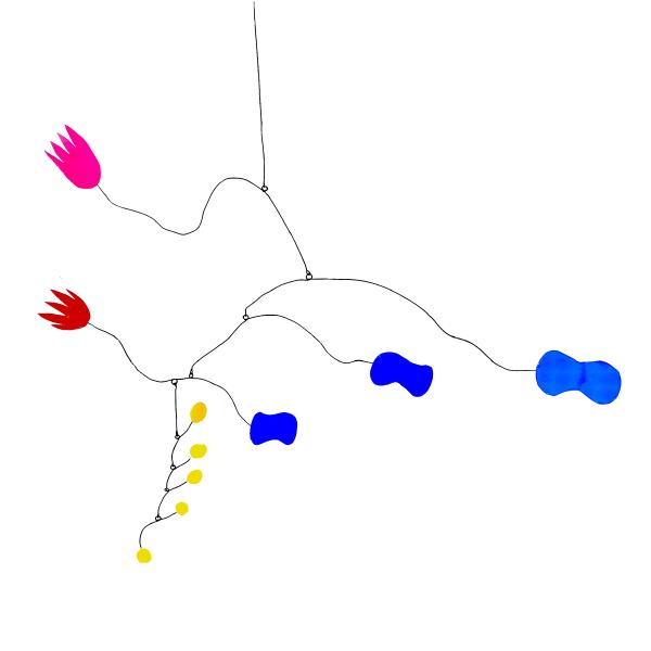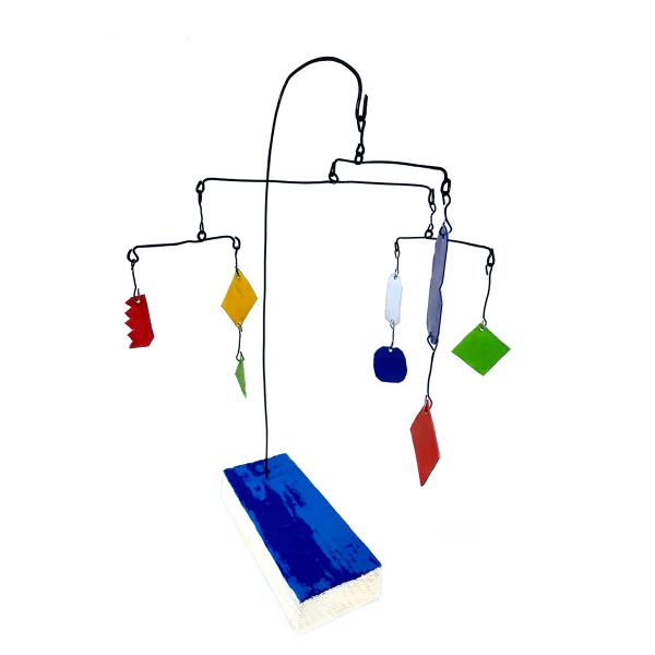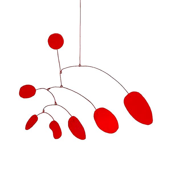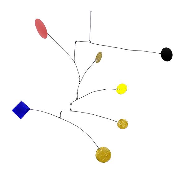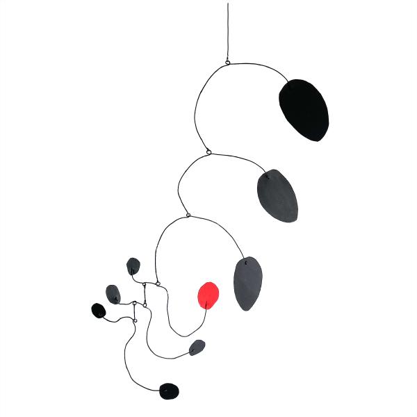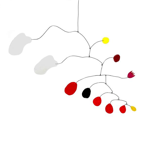 Das Mobile ist ein Kunstwerk, das sich in seinem Eigenleben kaum reduzieren lässt. Ein Akt eigener Ausgeglichenheit, im Raum schwebend und leicht den Blick des Betrachters füllend. Es wandelt sich mit den natürlichen Kräften des Raumes, dem Wind, dem Licht und dem Winkel der Betrachtung. Es unterhält uns mit seinem Spiel, seinen sich stetig verändernden Dimensionen.